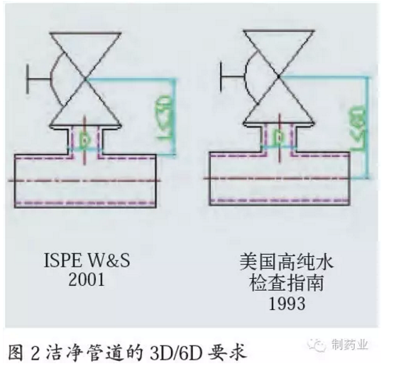 2001年ISPE水和純蒸汽基準指南的“從主管外壁開始測到支管盲端或閥門密封點的長度L≤3倍的支管直徑D(3D)”;