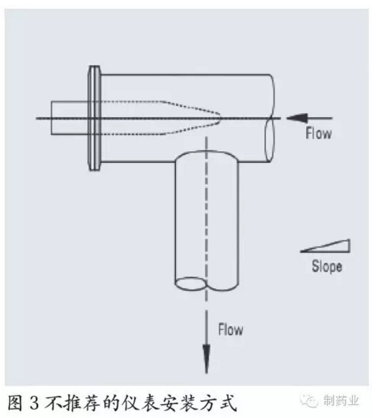 圖5所示的安裝方式管道的自排凈功能明顯一些,但基于現場安裝的限制,圖4所示的安裝有時也可以采用,只要經過驗證,對水質不會造成影響也是可以接受的。